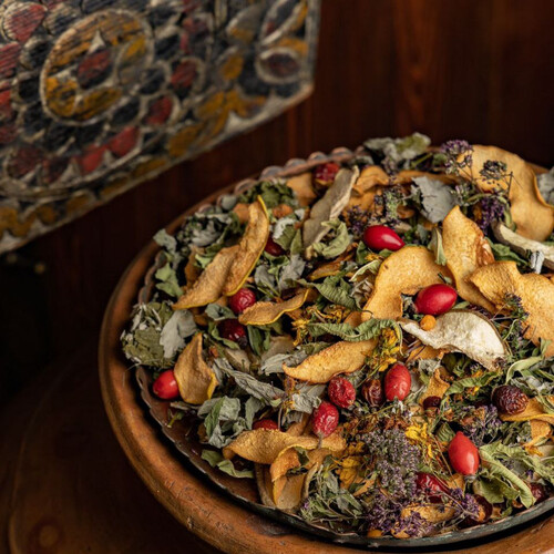 🍃 Состав: шиповник, айва, груша, душица, зверобой, боярышник, чабрец, мята, мелисса, ромашка, липа, листья айвы 🌿