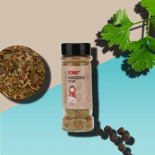 “Кавказская специя” — это пряная и ароматная смесь зелени и специй, вдохновлённая традициями кавказской кухни. Кинза, кориандр, чеснок, хмели-сунели и перцы создают насыщенный вкус с лёгкой остротой и тёплыми травяными нотами.