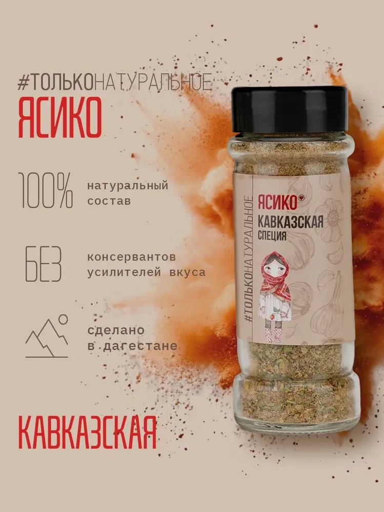 “Кавказская специя” — это пряная и ароматная смесь зелени и специй, вдохновлённая традициями кавказской кухни. Кинза, кориандр, чеснок, хмели-сунели и перцы создают насыщенный вкус с лёгкой остротой и тёплыми травяными нотами. Идеальн...